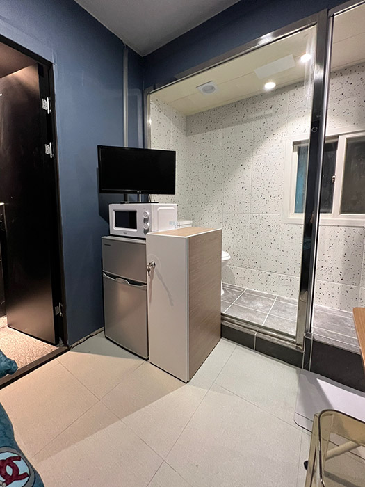 모든 방 개별 전자렌지, 개별 천정형 에어컨, 벽걸이 LED TV모니터, 개별 Wi-Fi, 2도어 냉장고, 화장실/샤워기(세면대, 수납장), 등 풀퍼니시드 시스템 원룸텔입니다.