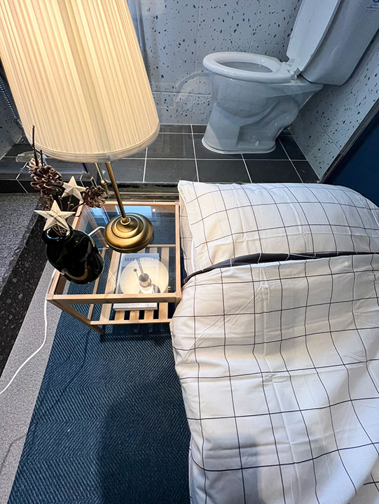편안한 침대, 옷장, 원목테이블, 의자, 무소음 2도어 냉장고